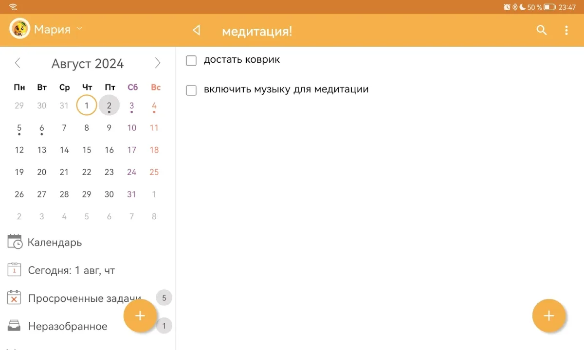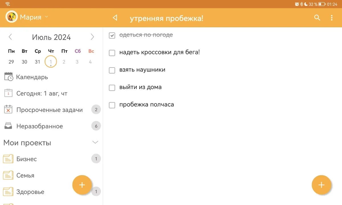 - возможность делать подпункты к одной задаче: если привычка, которую вы хотите сформировать, состоит из нескольких действий, их можно прописать в этом пункте и отмечать по мере выполнения.