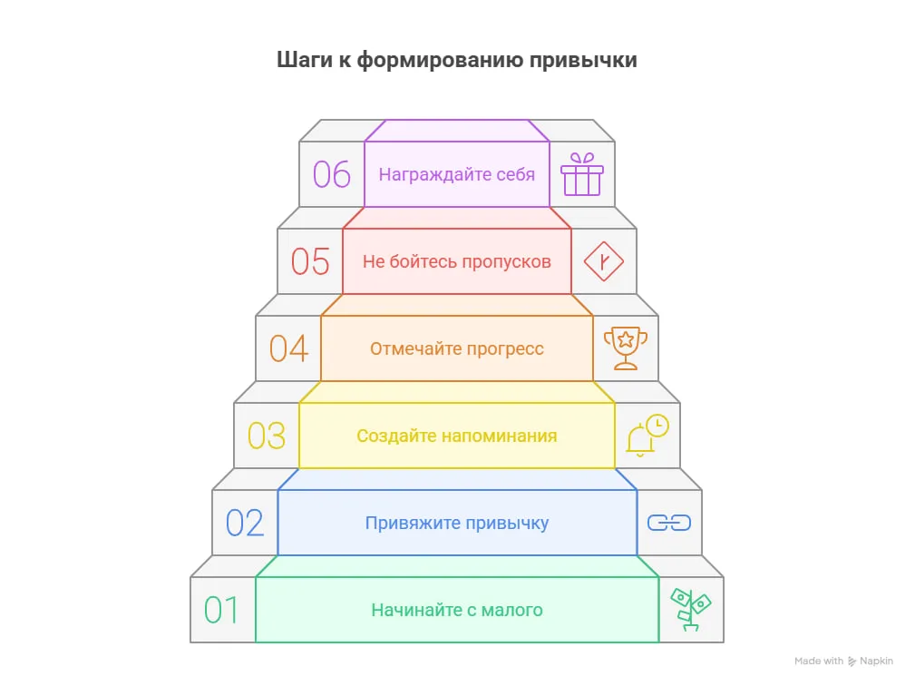 Для достижения успеха важно делать первые шаги постепенно, но уверенно. Так формируются устойчивые навыки и положительные изменения в жизни.