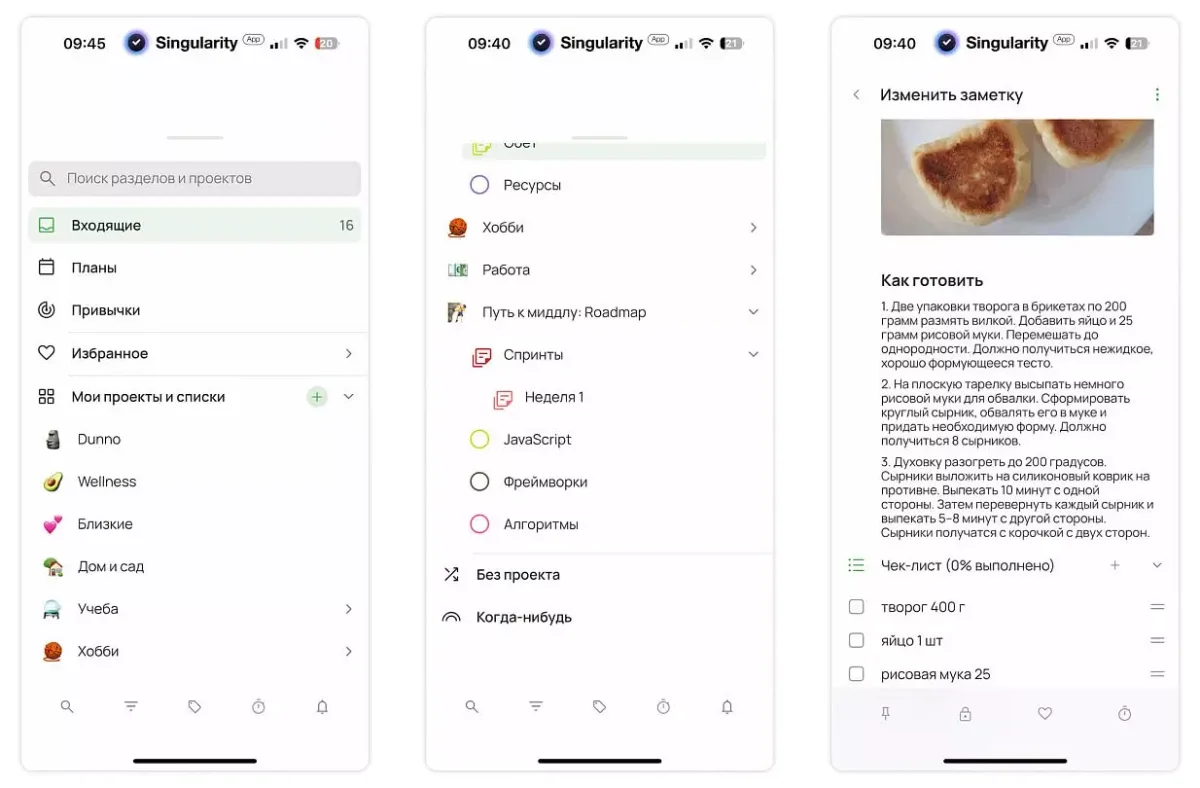 - SingularityApp — сильный планировщик, трекер привычек, вложенные проекты.