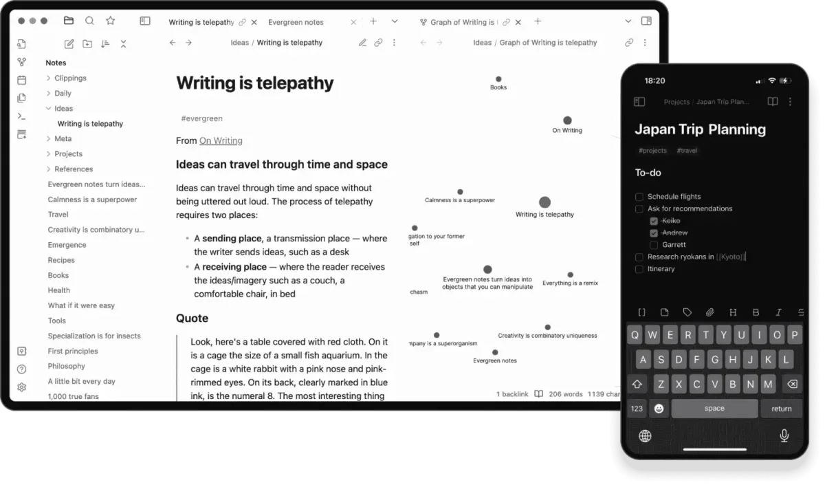Личных заметок, PKM — систем управления знаниями, создания базы знаний, ведения дневников, исследования тем, подготовки проектов, студентов, аналитиков и тех, кто хочет полную гибкость и локальное хранение.