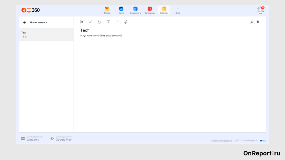 Российское приложение для онлайн-заметок и управления документами, работающее как личный блокнот и база знаний. Оно помогает хранить информацию, планировать задачи и организовывать рабочие материалы в одном пространстве. Подходит тем, кто ищет российскую альтернативу Notion с полноценной совместной работой.