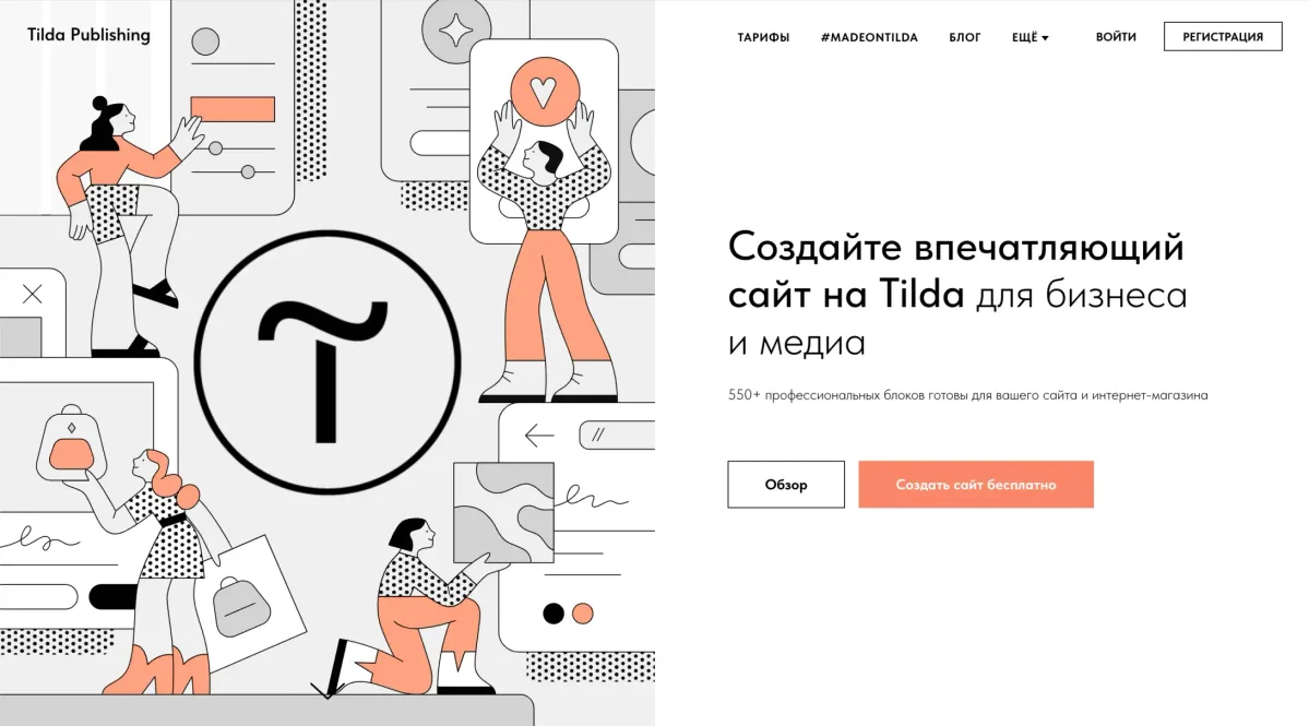 Tilda — это универсальный конструктор сайтов, который идеально подходит для создания лендингов под мероприятия. Она помогает организаторам быстро разрабатывать страницы для конференций, фестивалей и других событий. Благодаря готовым шаблонам и визуальному редактору, вы сможете создать профессиональный сайт без навыков программирования.