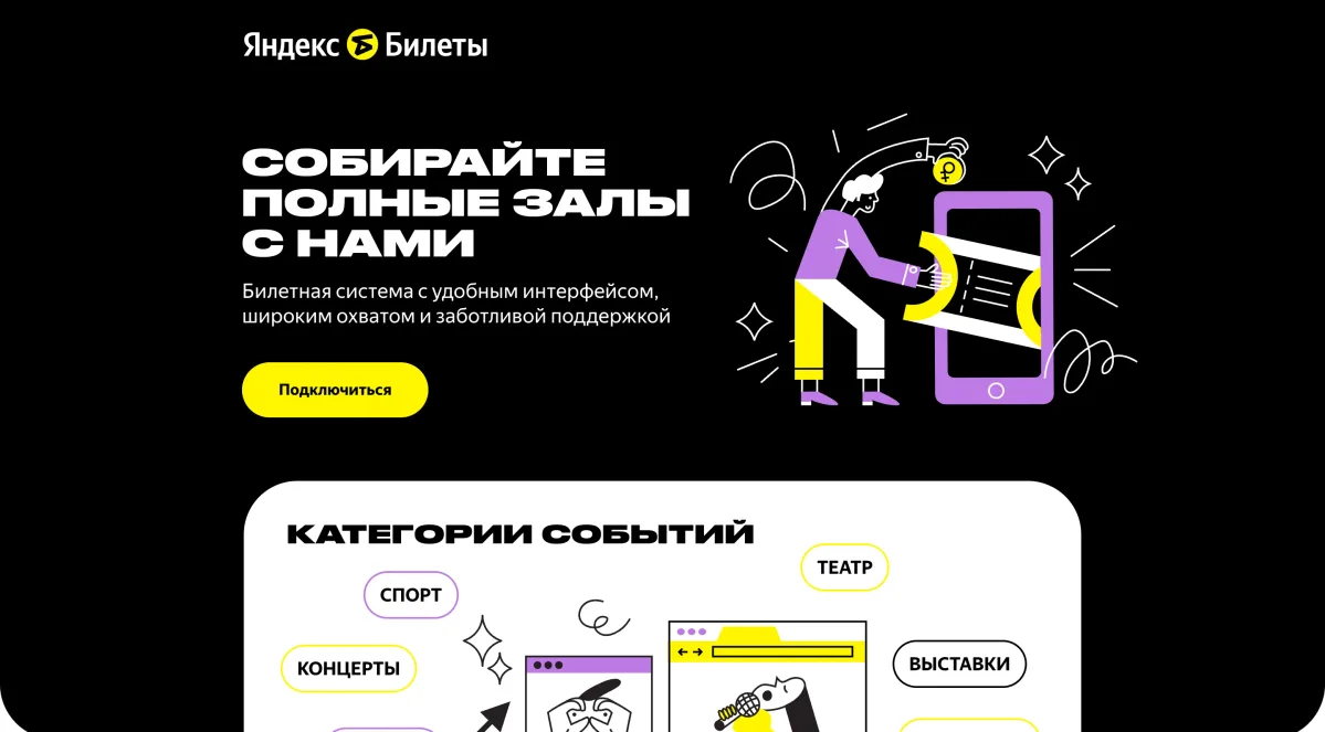 Яндекс Билеты — это удобная платформа для продажи билетов на мероприятия любого масштаба. Она интегрирована с другими сервисами Яндекса, что упрощает привлечение аудитории и продвижение событий. Организаторы могут легко создавать мероприятия, управлять продажами и анализировать доходы через понятный интерфейс.