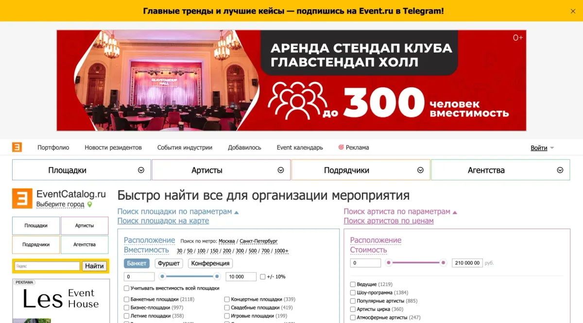 - Каталог подрядчиков. Широкий выбор услуг: аренда площадок, кейтеринг, декор и т.д.