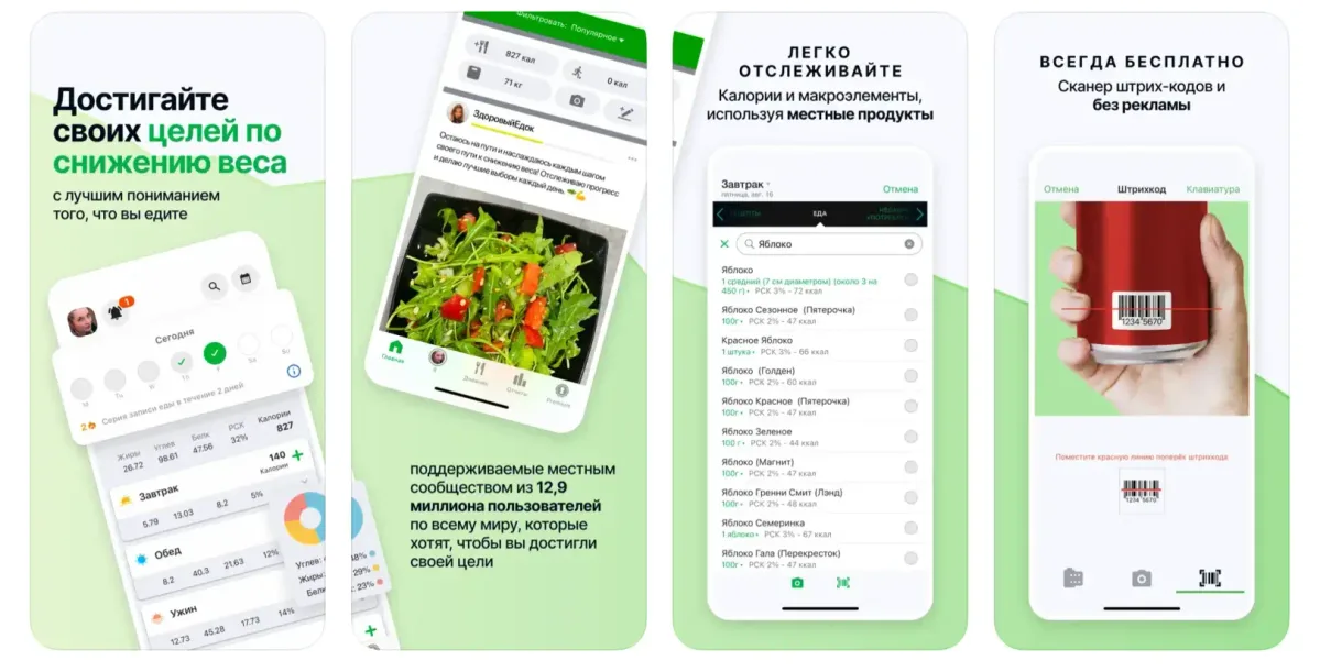 - Калькулятор калорий: подсчёт макро- и микронутриентов.