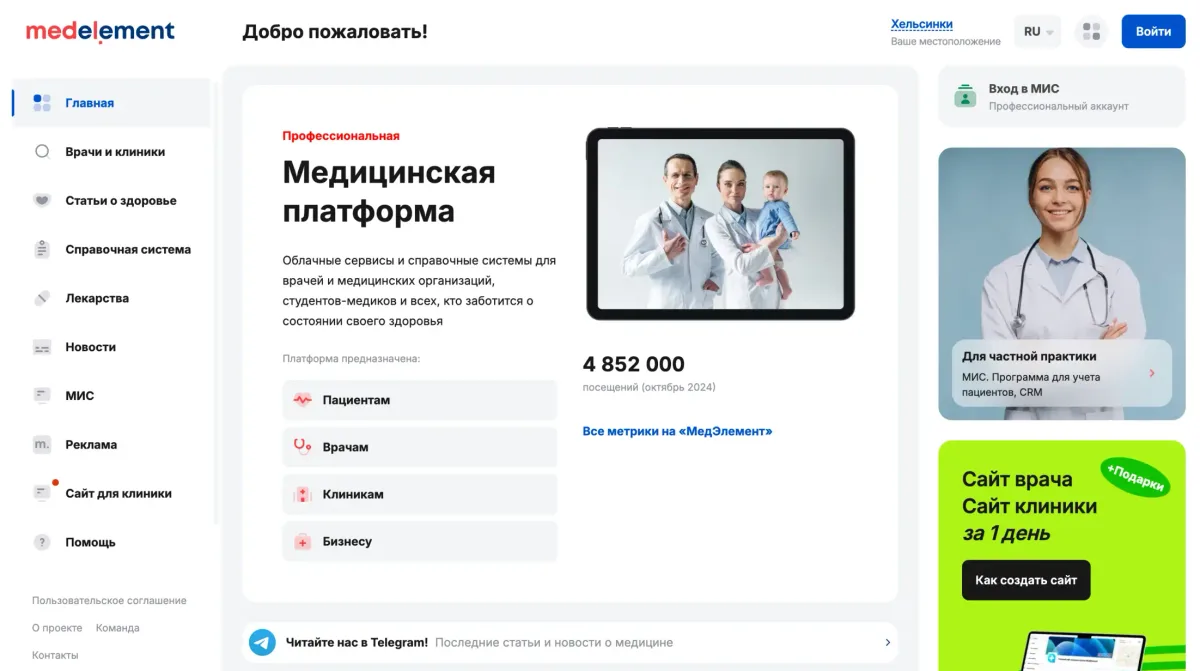 МедЭлемент — это облачная медицинская информационная система (МИС), которая позволяет автоматизировать работу медицинских учреждений. Она объединяет в себе функции регистрации пациентов, управления расписанием приемов, ведения электронных медицинских карт, учета финансов и услуг, а также формирования отчетов. Система обеспечивает удобный доступ к данным и помогает оптимизировать рабочие процессы в клиниках. Программа доступна в веб-версии, а также для устройств на Android и iOS.