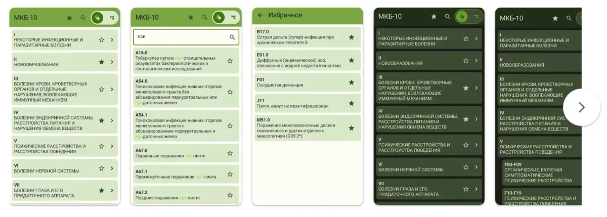 - Поиск по кодам. Позволяет мгновенно находить заболевания по номеру.