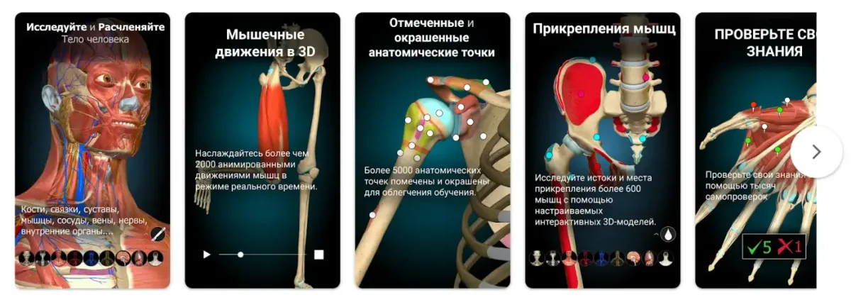 - Подробные 3D-модели человеческого тела. Полная визуализация органов и систем.
