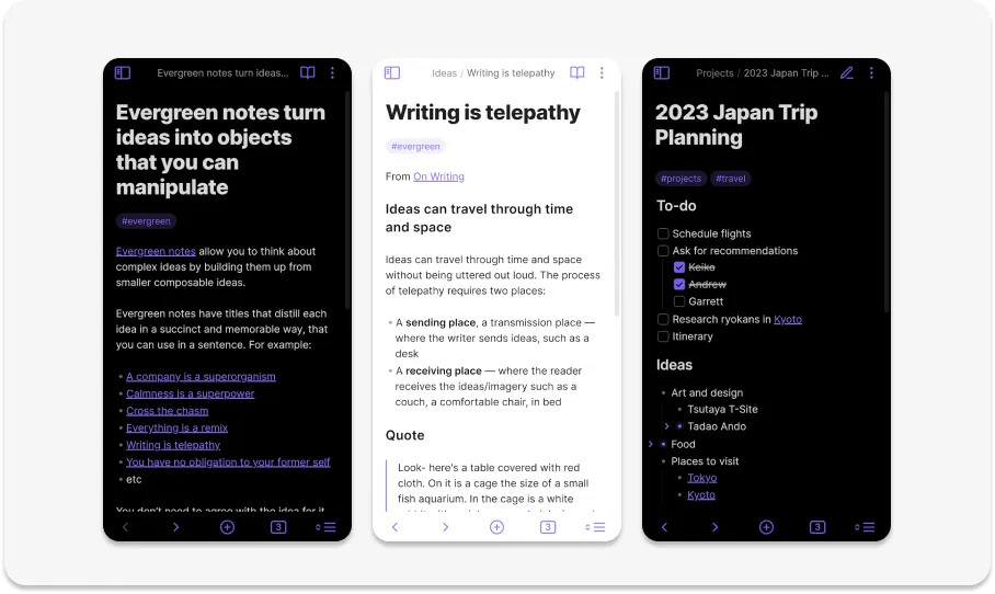 Obsidian — это приложение для создания заметок, которое позволяет пользователям записывать идеи, делать заметки, рисовать и делиться ими с другими.