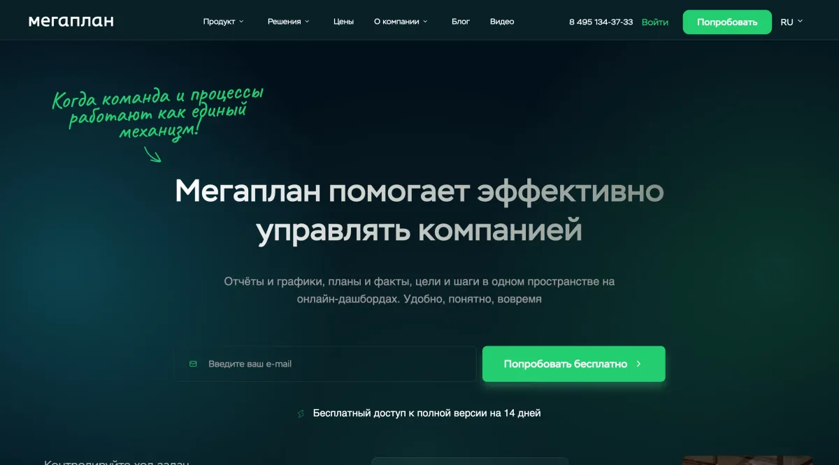 Мегаплан – это система для совместной работы и контроля задач в командах. Платформа помогает эффективно управлять проектами, контролировать выполнение задач и оценивать результаты работы. С помощью Мегаплан можно распределить задачи между сотрудниками и отслеживать их выполнение в реальном времени. Встроенная аналитика позволяет улучшить процессы и повысить эффективность работы.