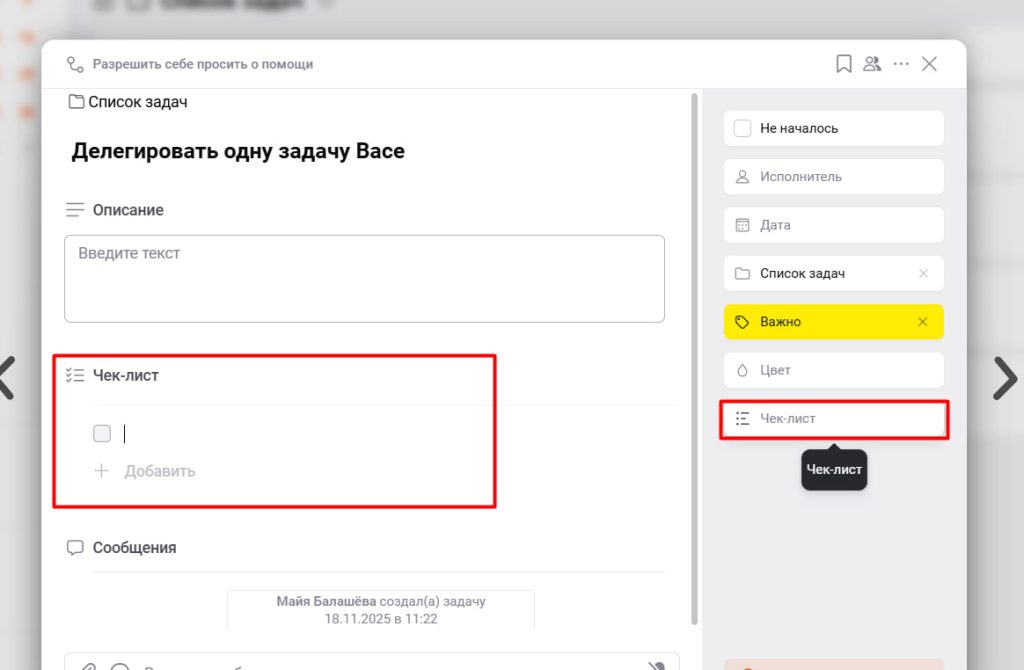 К чек-листам легко добавить критерии готовности: что именно нужно сделать, чтобы задача считалась завершённой. Это помогает фиксировать конкретные требования и закрывать задачу по факту их выполнения.
