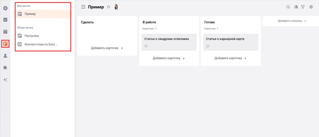 Задачи удобно передвигать по колонкам, задавать этапы, видеть, что находится в работе, а что уже выполнено. Формат канбан помогает держать всю картину под контролем.