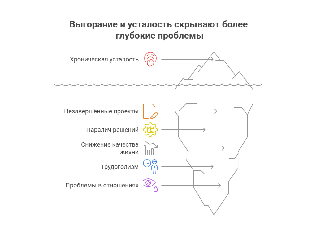 Это приводит к переработкам, сложности с принятием решений, застреванию в мелочах и ощущению бесконечной гонки на работе.