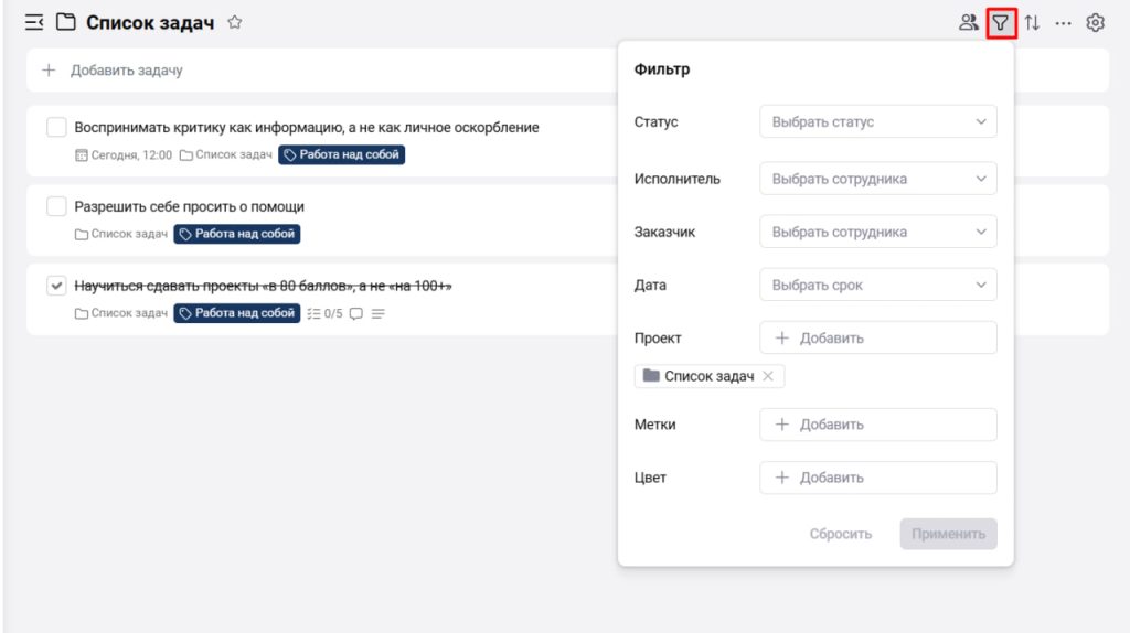 Просмотрите завершённые задачи — визуальный прогресс снижает тревогу и поддерживает уверенность.