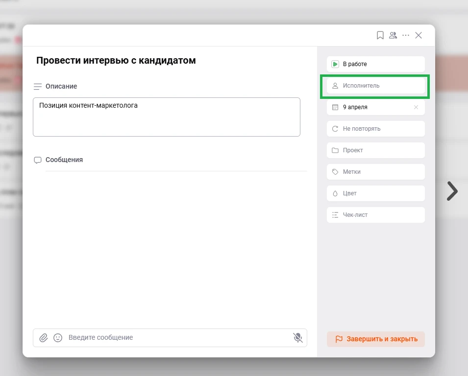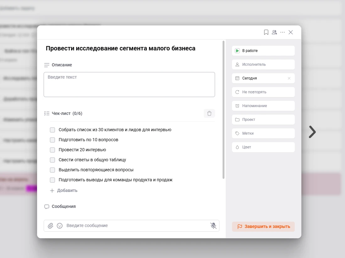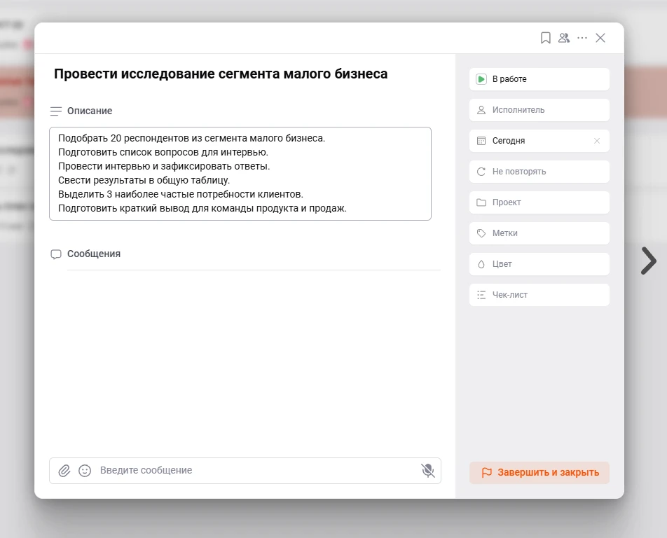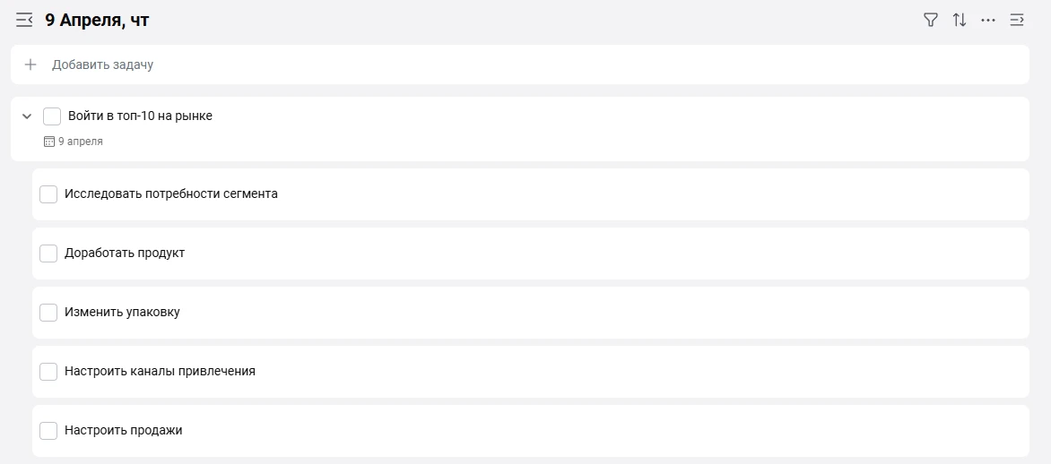 Именно на этом уровне уже появляются задачи для календаря, доски или проекта в ЛидерТаске.