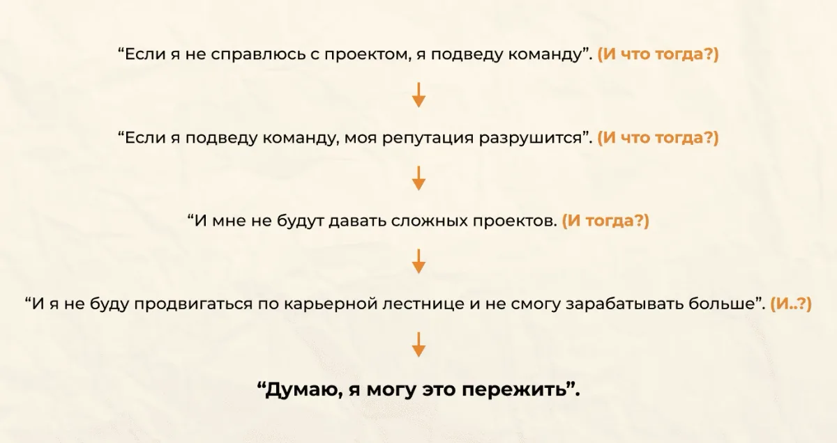 Но такая высокая мотивация может парадоксальным образом привести к прокрастинации: ведь любая ошибка кажется фатальной, и к задаче никак не хочется приступать. Чтобы снизить градус важности, попробуйте представить, что неудача уже произошла, проживите её и поймите, что это не конец света. Например, так: