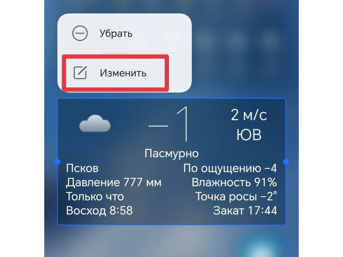 - Настройте вид и размер виджета по своему усмотрению, если для него предусмотрены такие функции.