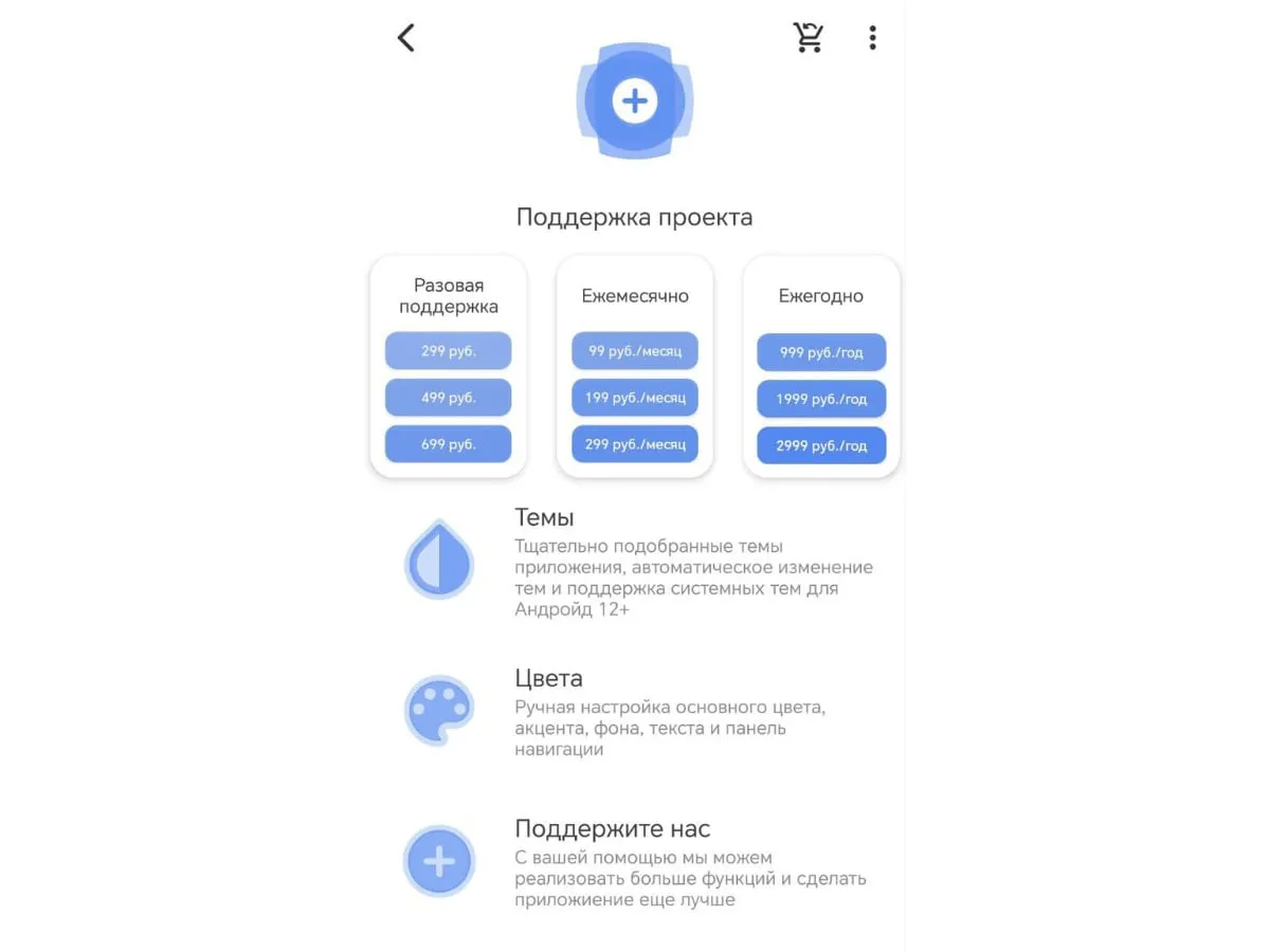 Календарь полностью бесплатный. Но если есть желание помочь развиваться приложению, можно поддержать проект девятью разными способами, за что дается доступ к двум дополнительным плюшечкам.