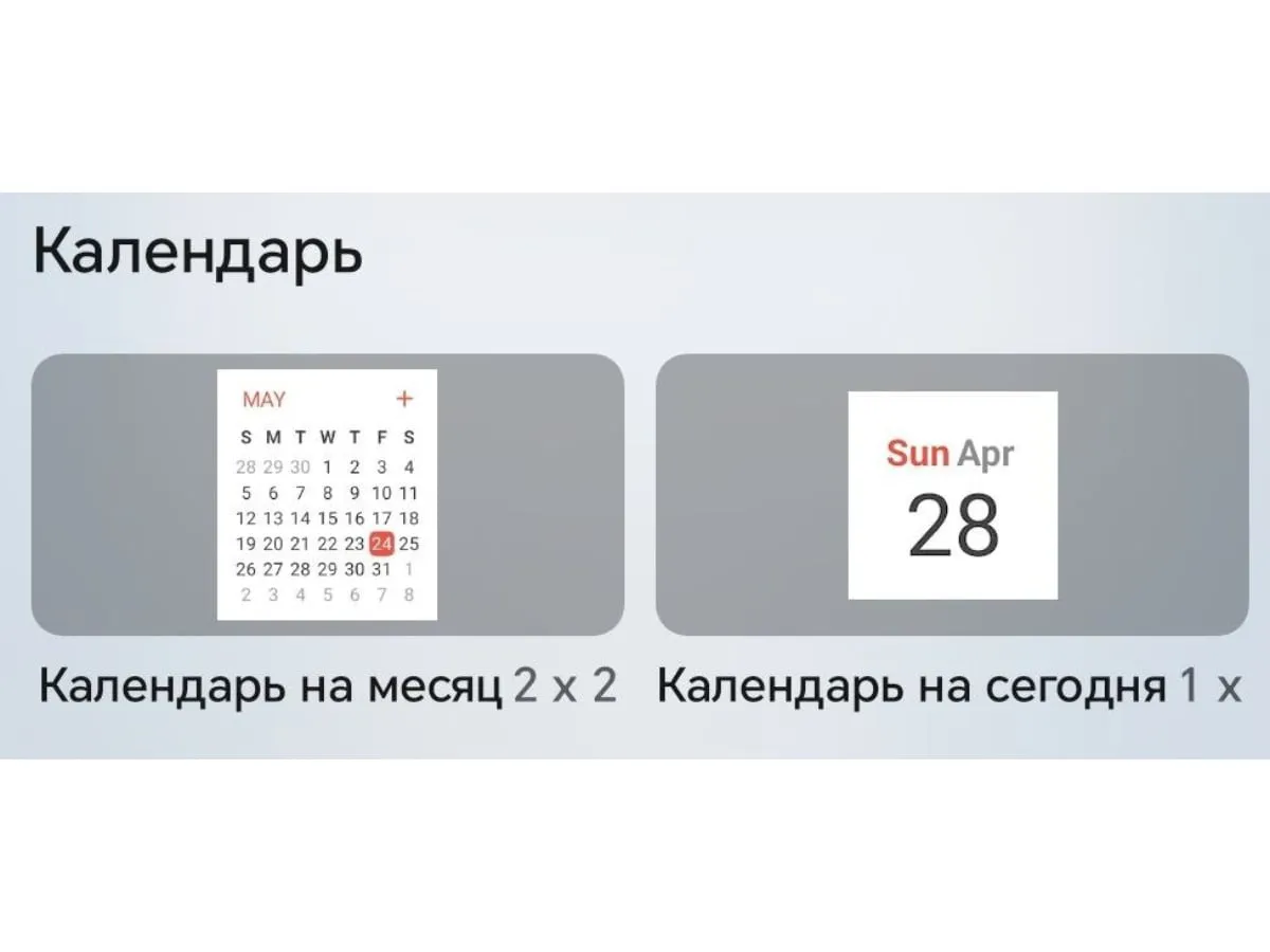 Возможность выбора размера виджета (от 2x1 до 4x2).
