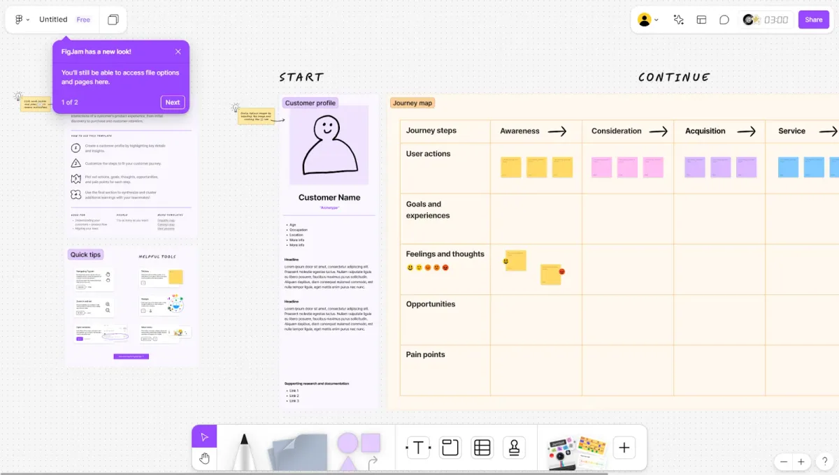 Сервис отлично подходит для проведения мозговых штурмов, разработки стратегий и создания дорожных карт проектов. Есть богатый набор возможностей для визуализации идей: от простых стикеров до сложных диаграмм. FigJam предлагает множество готовых шаблонов, которые можно настроить под конкретные задачи. Кроме того, сервис позволяет легко интегрировать дизайны из Figma, что делает его незаменимым для дизайнеров.