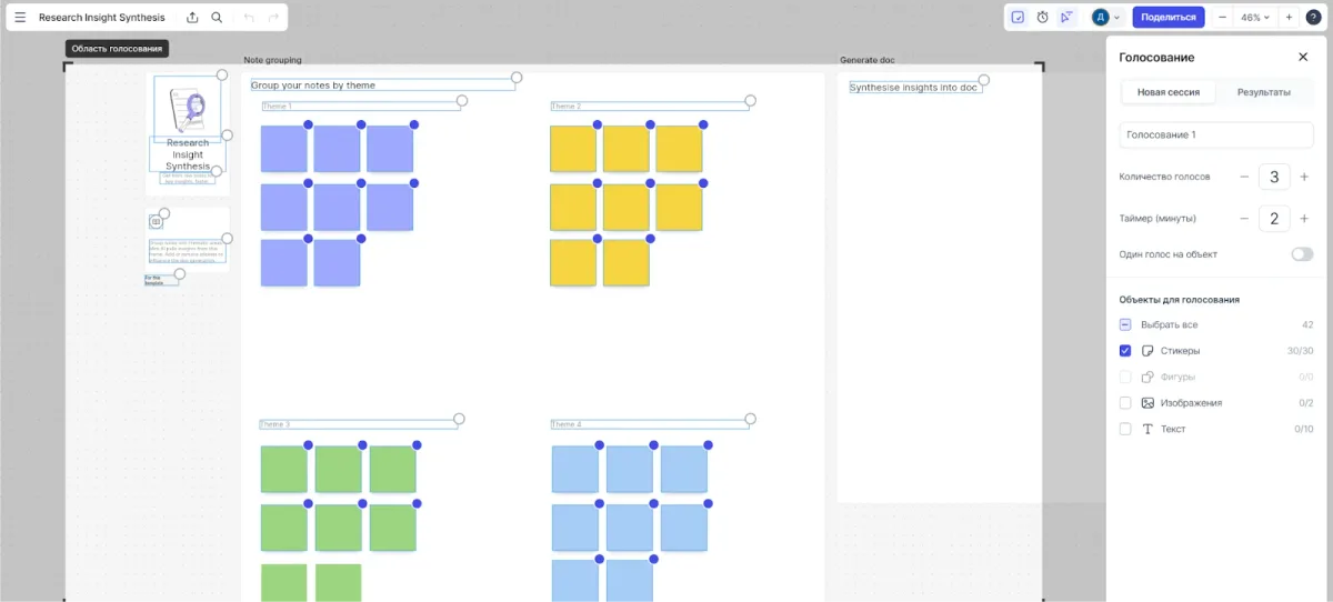 Платформа предлагает множество полезных функций: от простых стикеров и заметок до сложных диаграмм и интеллект-карт. Вы можете легко перемещать и группировать элементы, связывать их стрелками, добавлять изображения и даже рисовать от руки. Особенно удобно то, что несколько человек могут работать на одной доске одновременно, обмениваясь идеями в реальном времени.