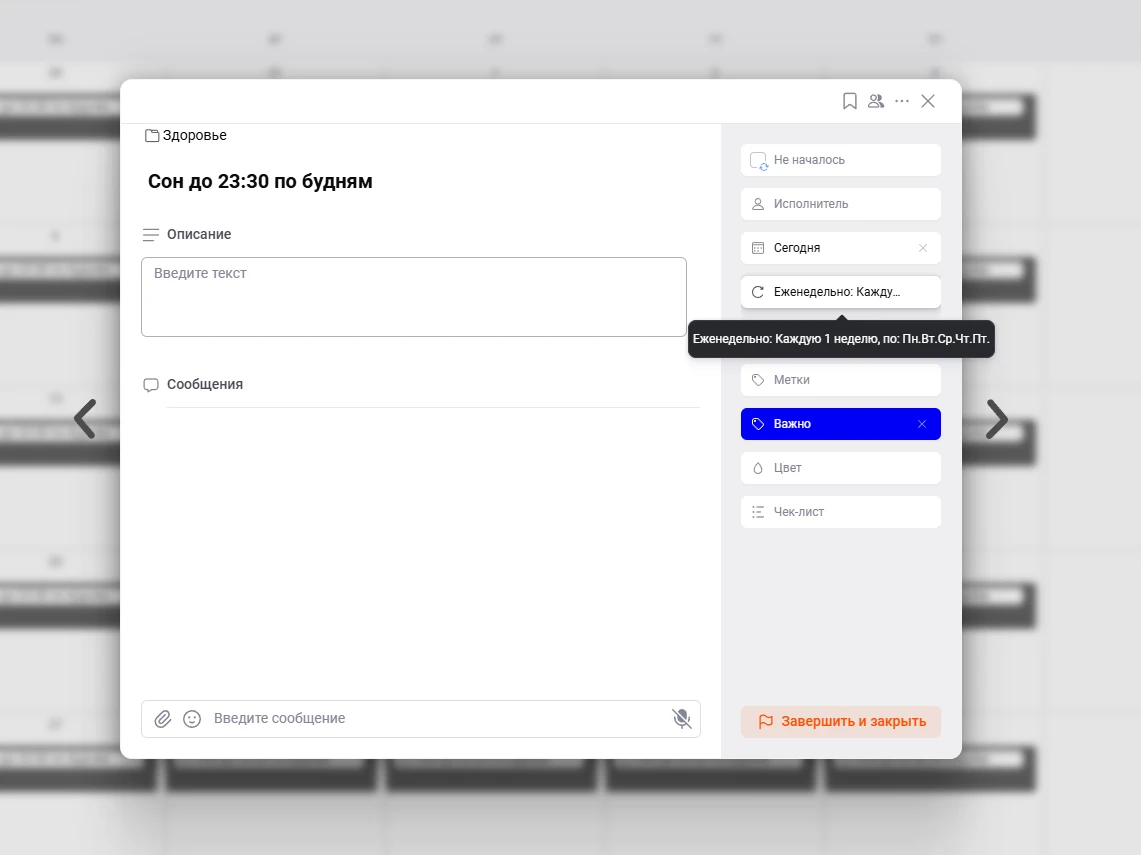 Если у ценности нет места в неделе, она пока не управляет жизнью. Она просто нравится вам как идея. Когда важные вещи получают свое время в календаре, им легче удержаться среди рабочих задач и срочных дел. В ЛидерТаске это удобно собрано в одну систему.