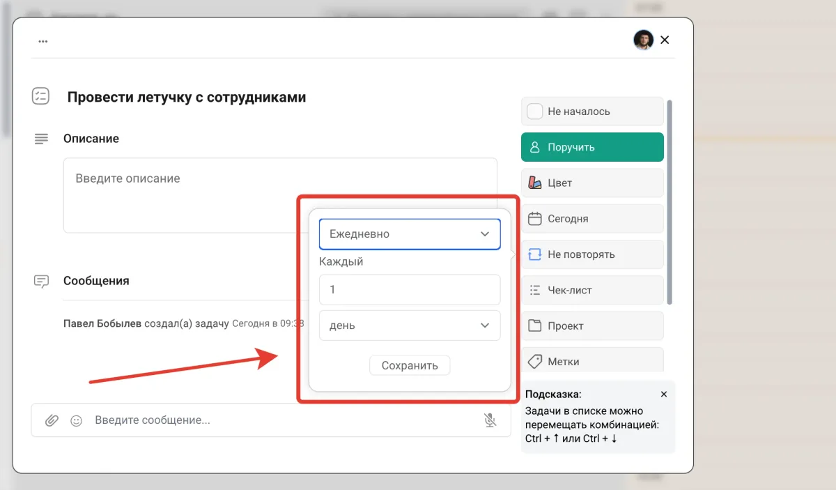 Приложения, такие как ЛидерТаск, помогают автоматизировать повторяющиеся процессы, установить напоминания и разделить задачи по приоритетам. Это позволяет тратить меньше времени на планирование и больше на выполнение. Пример: Автоматизируйте рутинные процессы. Например, настройте регулярные напоминания для задач с повторяющимся циклом.