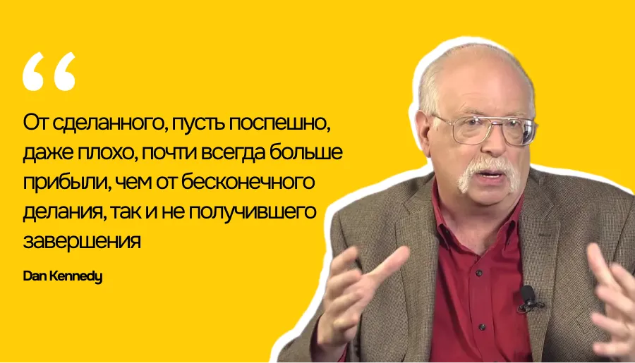 Кеннеди категорично заявляет: «Перфекционизм — это отговорка для тех, кто боится сделать первый шаг». Стремление к идеалу замедляет выполнение задач, делает процесс бесконечным и мешает достигать целей. Лучше сделать на 80%, но вовремя, чем ждать идеального результата.
