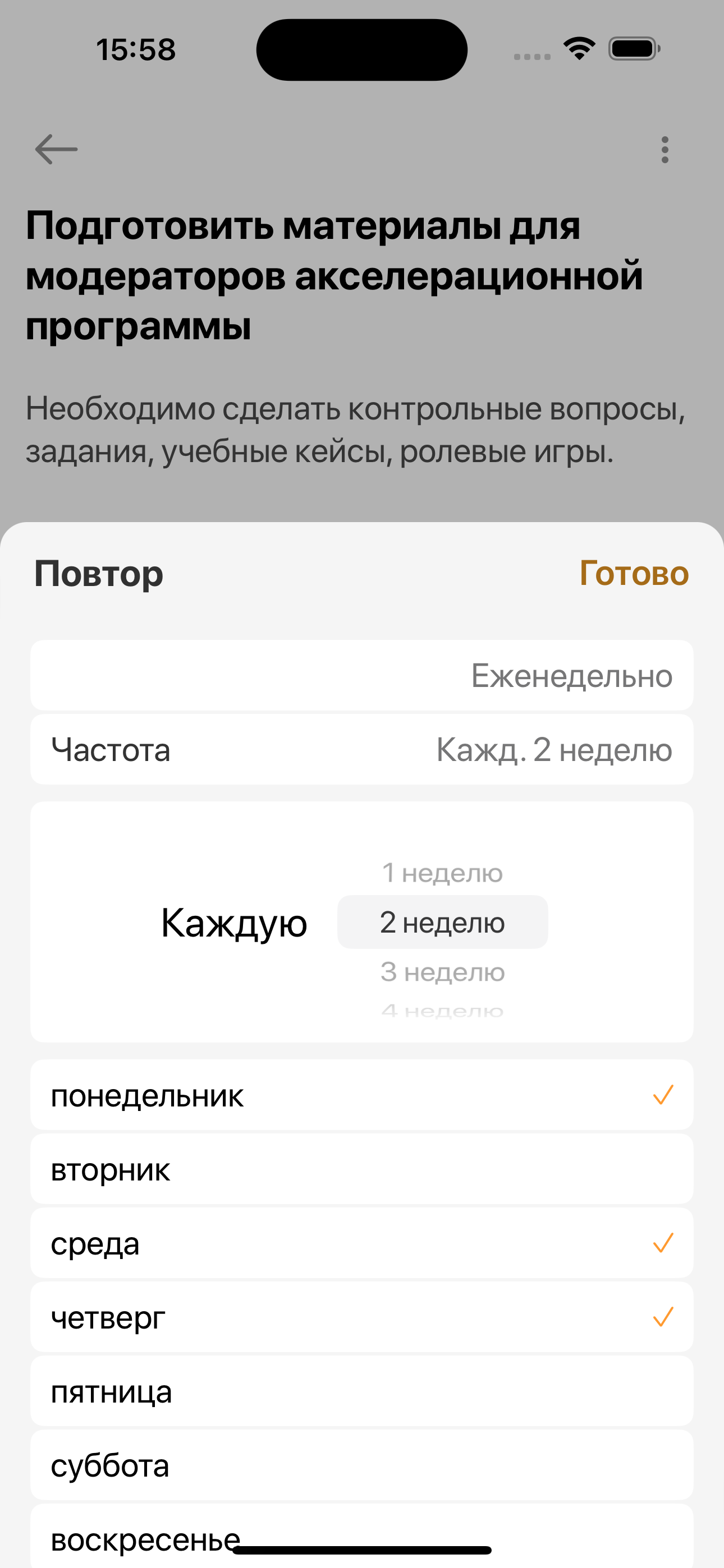 Вот так выглядит программа для управления делами в мобильном приложении:
